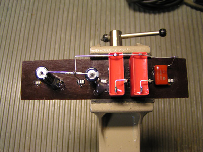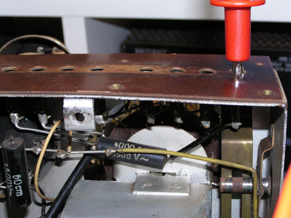 Nachdem soweit alles wieder eingebaut war und noch zwei C's ersetzt wurden, habe ich zur Sicherheit die Röhren gezogen und mit der linken Hand in der Tasche mal eingeschaltet und dabei die Stromaufnahme sowie die Anodenspannung " im Auge " gehabt.....war soweit alles ok. Danach noch die Sockelkontakte mit einem Glasfaser Stift gereinigt, Röhren hinein und mit dem Regeltrafo langsam hochgeregelt. Dann Antennen quer durchs Zimmer gespannt, Erde bis in die Zimmer Ecke gelegt und dann.....quiiitsch....quuuuitsch beim abstimmen auf KW.....na das war ein Moment einfach schön Meiner besseren Hälfte hat es wohl nicht so zugesagt, sie hat sich gleich verzogen Ja, ich hätte nicht gedacht das ich so schnell zum Erfolg komme, aber Dank Eurer Hilfe war das kein Problem. Zwei kleine Probleme habe ich tunlichst vor dem Einschalten beseitigt. Beide C's ( Antennen / Erde ) waren sicherlich ein Sicherheitsrisiko und hätten längeren Betrieb nicht überlebt, siehe beigefügte Bilder. Der 150pF sowie der 60pF waren für ihr Alter noch ok.