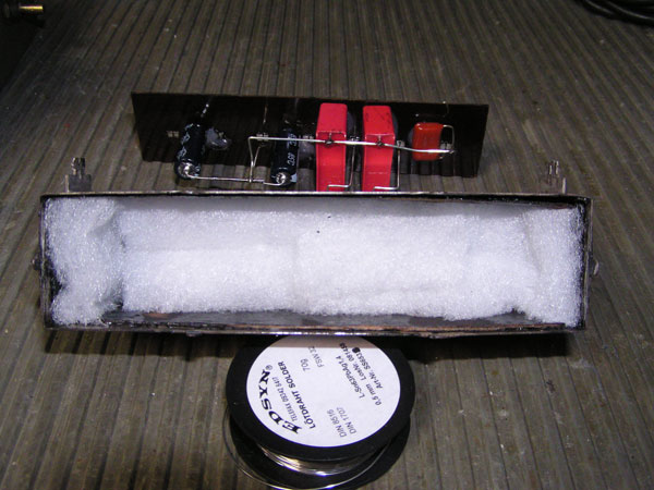 das sieht ja schon recht viel versprechend aus - Respekt! Das Vergiessen in Harz halte ich jedoch für weniger empfehlenswert. Was, wenn wieder einmal ein Kondensator den Dienst quittiert? Da kommt dann um so mehr Arbeit auf Dich zu. Deshalb schlage ich Dir vor, den Hohlraum z.B. mit preiswerter (schwer entflammbarer) Filtermatte auszufüllen. Gibt´s im Baumarkt, Stichwort "Dunstabzugshaube" !