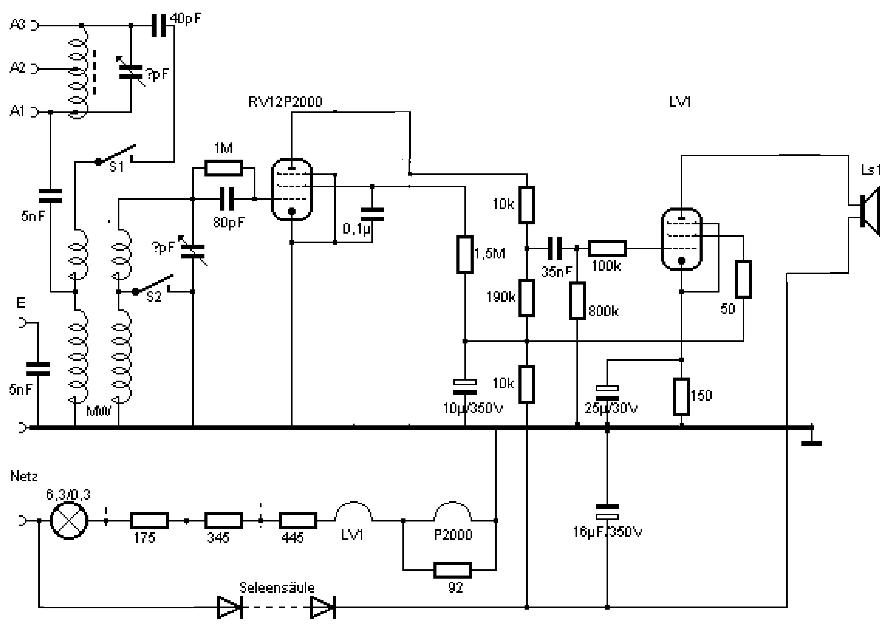 PS: Könnte die Röhrenbestückung auch so sein: RV12P2000 = NF Endstufe; RV12P2001 = Audion zumindest für erstere gibt es auch NF Endröhren Applikationen.
