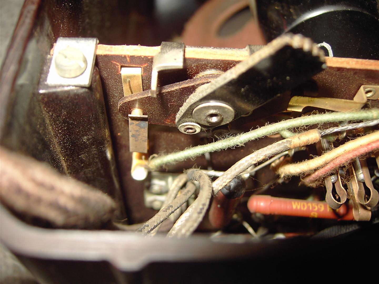 der Schalter sieht ok aus. Ja mit Ohmn-Meter ist ein Widerstandsmessgerät gemeint. Viele moderne und alte Vielfachinstrumente verfügen über einige Ohm-Bereiche. Einen mittleren Ohm-Bereich auswählen und dann kurz (ca. 1 Sek) messen. Es kommt hier nur auf eine Art Durchgangsprüfung an. Jedenfalls sollte der Zeiger beim Berühren der Heizkontakte ausschlagen. Der resultierende Ohm-Wert ist nicht so wichtig. Alle drei Röhren sollten mit dem Ohmmeter einen Ausschlag kleiner unendlich haben.