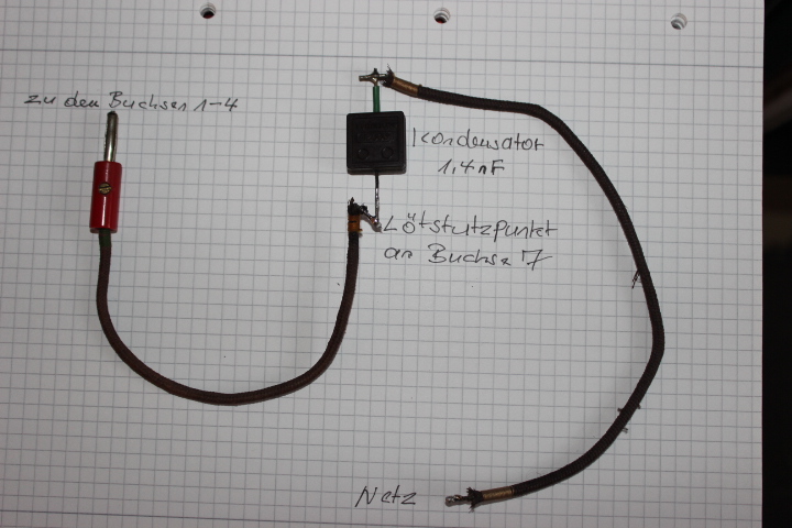 zum Abschluß der Diskussion zeige ich Euch die ausgebaute Netzantenne. (Bild 9) der Serie. Die Buchse 7 habe ich wieder mit dem HF-Spulensatz verbunden. Damit ist der Ursprungszustand des VE wieder hergestellt.