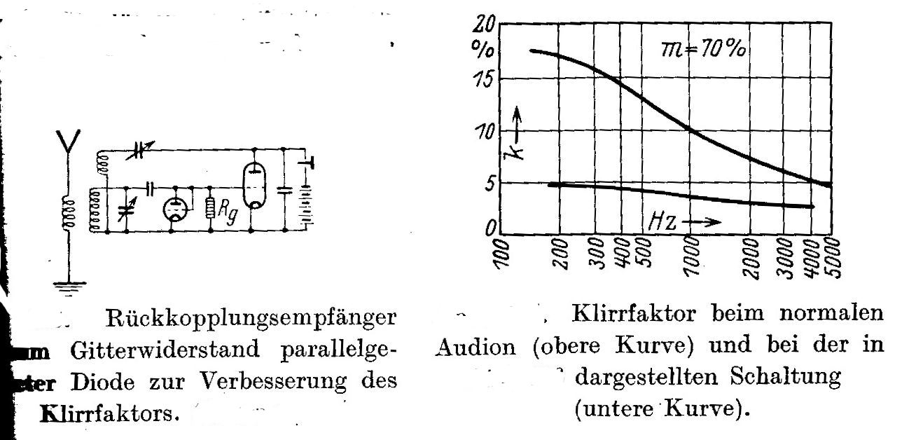 das haut mich aber jetzt um. Ich habe ähnliche Beobachtungen bei starken Ortssendern mit meinen Röhrenaudionkleinspannungsversuchen gemacht. Bin aber bis jetzt davon ausgegangen, dass hier die Schaltung noch optimiert werden muss und die Verzerrung aus dem NF- Verstärker kommt. Würde dies nicht im Umkehrschluss auch bedeuten, das ein Audion mit Rückkopplung, dem Modulationsgrad von heutigen AM Stationen, einfach nicht gewachsen ist? Ist es nicht ausreichend den Gitterkondensator kleiner zu machen um den Effekt zu mindern?