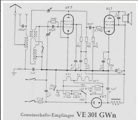 ... an der Röhrenfassung der VC1 --> VF7 brauchen nur Schirmgitter und Bremsgitter mit den wenigen Bauteilen angeschlossen werden (siehe Schaltbild) und die VC1 gegen eine VF7 getauscht werden.