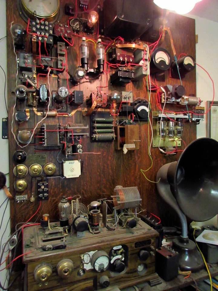 das ist ja mal was.....ein Spaßradio?...Das wäre . Sieht nach einer echten kompletten Schalttafel aus einer Radiowerkstatt anno 28 aus. Die roten Isolierungen der Schaltdrähte machen mich aber skeptisch.