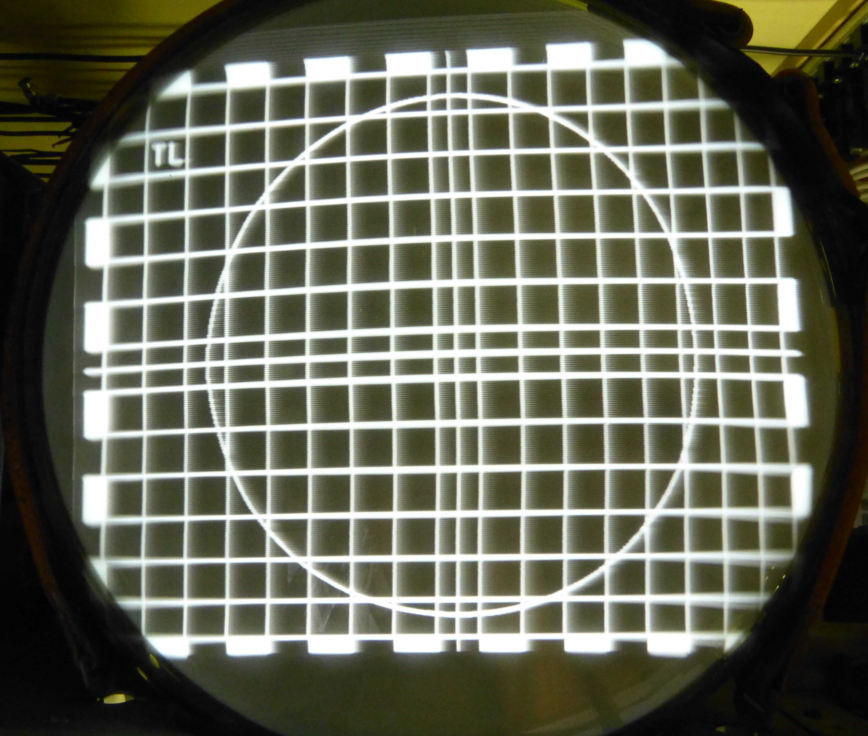 nachdem ich schrittweise alle nicht ganz frischen Röhren gegen NOS ausgetauscht habe war das Bild etwas höher als sonst, wegen der 6V6 vermutlich. Da die Ablenkeinheit und die Ionenfalle sich gegenseitig beeinflussen habe ich anschliessend mit beiden hantiert um das Bild wieder in die Mitte zu bekommen. Dabei bemerkte ich dass es eine, an sich nicht optimale, Stellung der Ionenfalle gab in der das Bild auf einmal fast überall scharf wurde. Genaugenommen war der Strahl weniger elliptisch. Siehe "Screenshot".