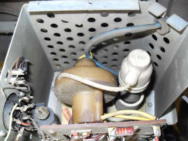 Ich würde mich über den F171 drübermachen, denn dieser Zeilentrafo ist schon mal getauscht worden, der stammt aus der F300er Serie und hat schon eine sauber vergossene Spule, der muß einfach funktionieren! Der Bildkippausgangstrafo sieht etwas schwarz aus vielleicht ist das normal, ich schau morgen mal bei meinen Kurfürsten nach. Nach der Kondensatorkur müßte der dann laufen, der blaue Elko da links oben unter den vier Reglern für Bildhöhe usw. ist auch ein kritischer Kandidat (8 mF, 385V). Diese Plastikchassishalte müssen intakt sein, das Radiochassis muß galvanisch getrennt vom Fernsehchassis sein, auch der Kanalwähler ist isoliert eingebaut, beim F44 dagegen ist alles in Allstromausführung, hat U-Röhren im Radioteil. Bei Deinem F 44 wird wahrscheinlich eine neue Hochspannungsspule fällig, es kommt gar nicht so sehr auf den Ohm-wert an, auf die Schenkel muß sie passen. Ein kleiner Ausschnitt von meiner Kondensatorkur... Gruß Hans