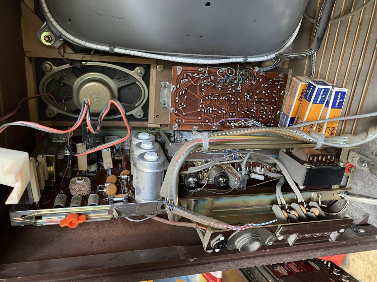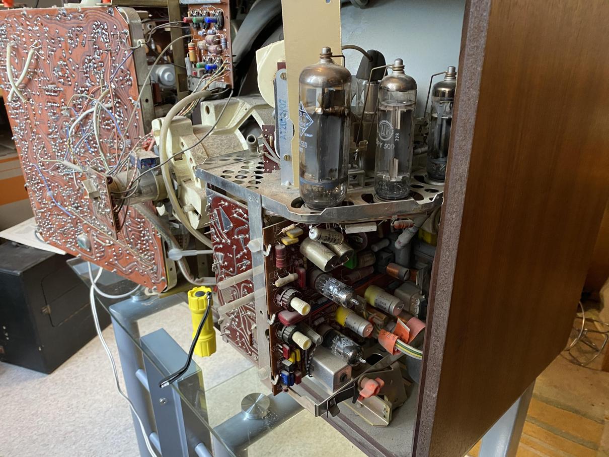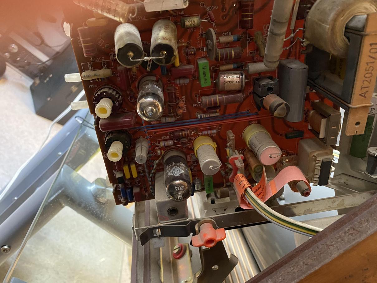 ja sieht noch super aus! Gründlich reinigen und es kann losgehen. Was hat der für eine Farbendstufe? Ich sehe keine 3x PCL200. Hat vielleicht schon transistorisierte Farbendstufen? Dann dürfte der aber nicht mehr 1967 sein, sondern 1-2 Jahre jünger. Nett auch der Röhrenvorrat von Siemens Röhren im Gerät!