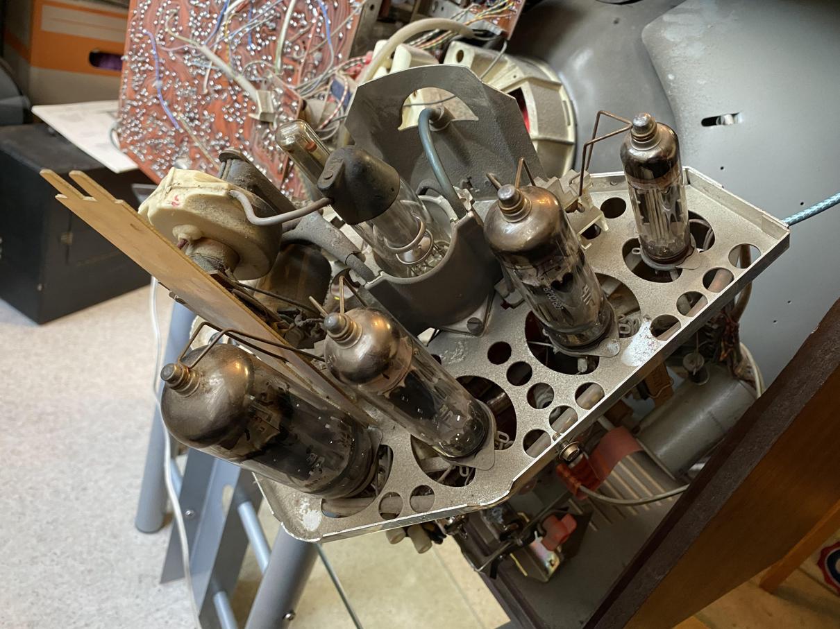 Ja, den Käfig habe ich schon abgenommen. Und eine Ballasttriode sucht man in diesem Gerät vergeblich. Es hat dafür einen extra Hochspannunstrafo, der unabhängig die Hochspannung regelt. Ich glaube Grundig hatte das auch so gelöst, dadurch ist die einzige wirkliche Röntgenquelle der Hochspannungsgleichrichter.