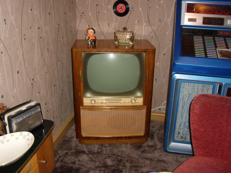 Sehr schön das du den Fernseher restauriert hast und ihn nicht "verbastelt" hast. Ich besitze auch 2 Graetz Tv/Radio Schränke,aber das Modell "Kurfürst".Diese,und nochn paar andere Radios und auch 2-3 Musikschränke müssten aber noch elektrisch restauriert werden.Hoffe das klappt irgendwann endlich mal,wenn da nicht die Zeit dafür so rar wäre... Besonders gefällt mir das Zimmer im 50er Jahre Stil wo der Fernseher auf den Fotos steht! Wirklich toll! Hätte ich auch gern! Obwohl,Wohnung eigentlich groß genug,bzw separates Zimmer,aber zuviele Geräte vorhanden die den Platz dafür nehmen.Und trennen kann ich mich meistens nur schwer von etwas. Aber dieses "leiden" ist ja bestimmt unter gleichgesinnten gut bekannt!