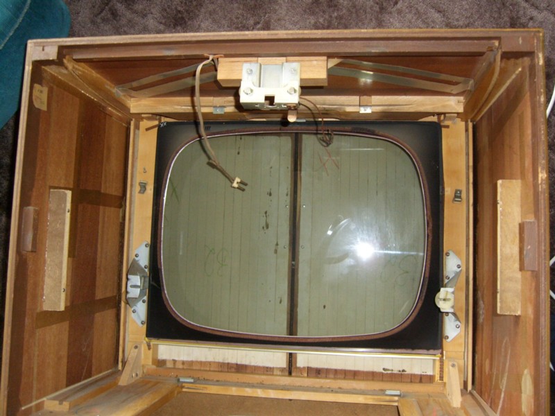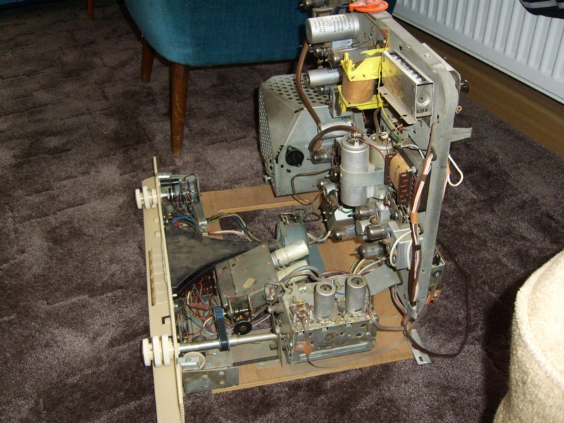 vor ca. 6 Wochen habe ich bei *(W)* einen Graetz Fernseher aus den 50er Jahren ersteigert. In der Artikelbeschreibung wurde darauf hingewiesen dass der FS noch eingeschränkt läuft. Auf Grund dessen habe ich darauf geboten und den Zuschlag bekommen. Das Gerät konnte in einer alteingesessenen Gaststätte abgeholt werden. Der erste Eindruck war sehr positiv. Der Verkäufer erzählte, dass es nur gelegentlich genutzt wurde und in den 70er Jahren auf dem Dachboden eingelagert wurde. Bis auf einige minimale Macken war das Gehäuse in Top Zustand. Am nächsten Tag wurde mal an getestet wie der FS läuft. Bis auf einen Bildkippfehler war soweit nichts festzustellen. Die Bildröhre hatte noch volle Helligkeit und Kontrast. Ursprünglich wollte ich nur ein altes Gehäuse um einen Flachbildschirm darin einzubauen aber dafür war es zu schade. Also wurde eine Liste mit den zu ersetzenden Kondensatoren gemacht. Nachdem ich alle Kondensatoren gewechselt hatte, lief das Gerät wieder. Ein paar Kleinigkeiten mussten noch gerichtet werden, das übliche halt. Das Gerät ist sogar schon mit einem UHF Tuner nachgerüstet worden. So kann ich einen Videorekorder anschließen und ein paar Folgen Stahlnetz schauen. Eine passende Kabel Fernbedienung von Graetz habe ich auch in der Bucht bekommen.