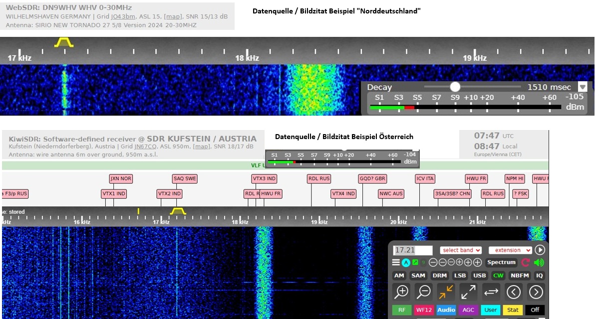 S6 wurde im Wilhelmshavener Web-kiwi-SDR angezeigt, in etwa gleicher Pegel wie der Marinesender in Großbritannien. In Österreich ebenfalls in in diesem Bereich. 15dB bis 20dB über Grundpegel werden oft zurückgemeldet, erheblich mehr, als was Übersee erwartet werden kann.