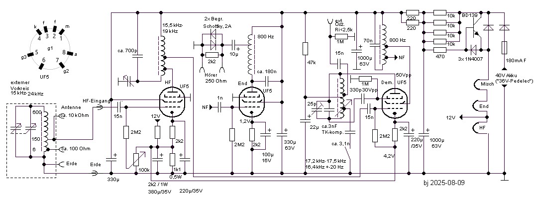 Ich war und bin mir sicher, dass bei Start dieses Threads im Startbeitrag keine Eektronenröhren (Zitat "Alle 3 Röhren werden CF7 oder UF5 sein, die mit kleiner Schrimgitterspannung laufen.") erwähnt wurden, das zeigen ja auch Antworten von Nutzern auf den Tread, die gerade auf diesen Umstand aufmerksam machten.