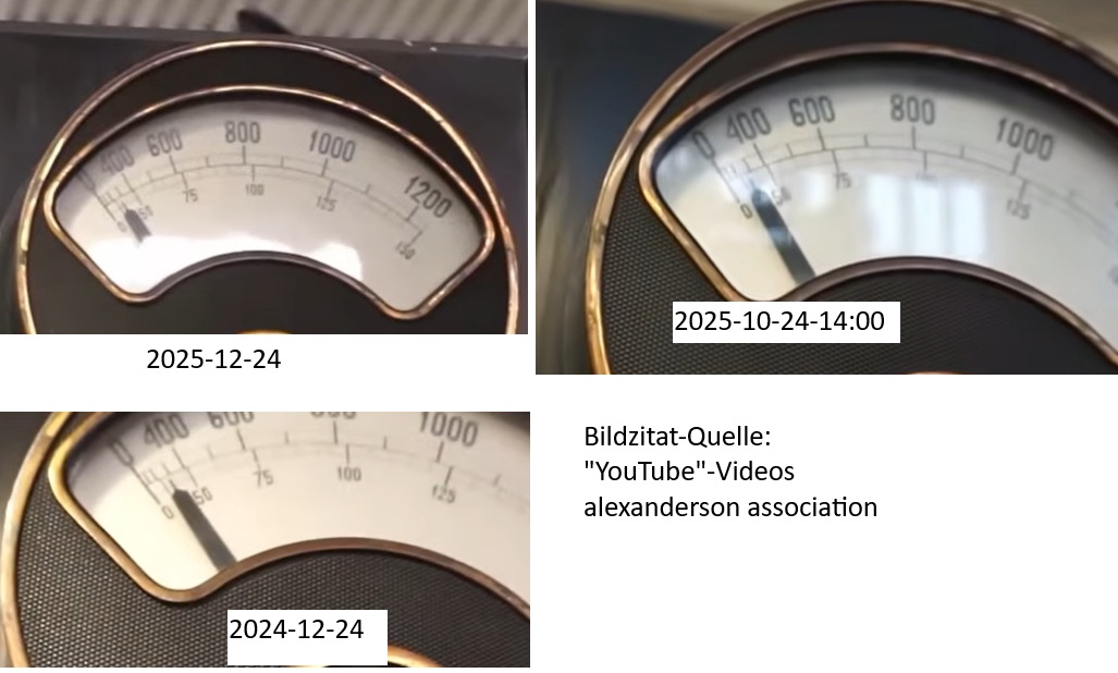 Grund, sich zunächst den Antennenstrom anzuschauen, auch wenn das Instrument ungünstig im unteren Viertel anzeigt, aber auf einigen Videos ist er recht gut zu erkennen: