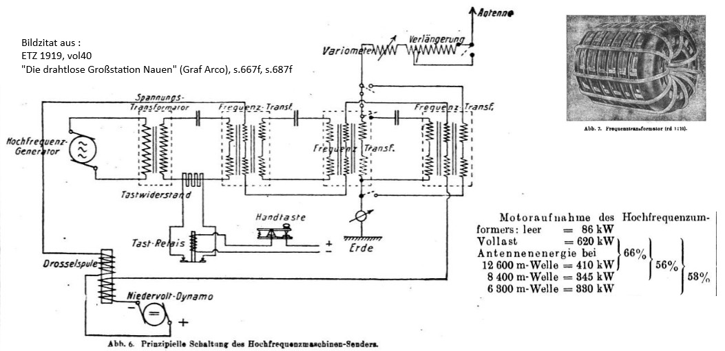 Ausführliche Berichte über Nauen finden sich in der ETZ 1919, vol40 h t t p s://archive.org/details/elektrotechnische-zeitschrift-40.1919