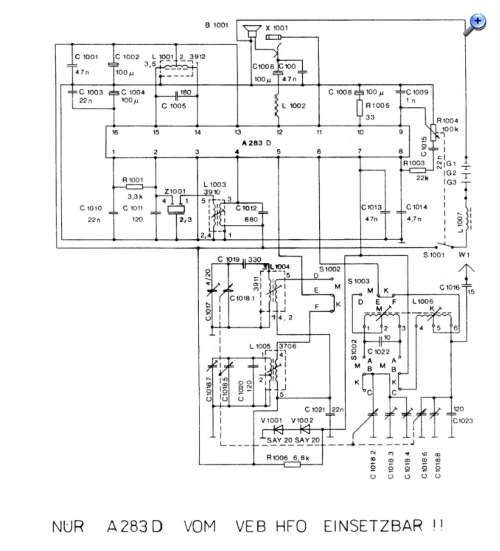 Hallo zusammen, war denn in der DDR der lange Strich vom Batterie-Schaltzeichen Minus? Wenn nicht, dann wäre doch der Minusdraht zum Lautsprecher zu führen. Hier den Lötpunkt, welcher zur Minusseite der Kopfhörerbuchse geht. Das würde auch von der Länge passen. (Siehe auch den Minusstrich unter Kondensator C 1014) Grüße Alfred