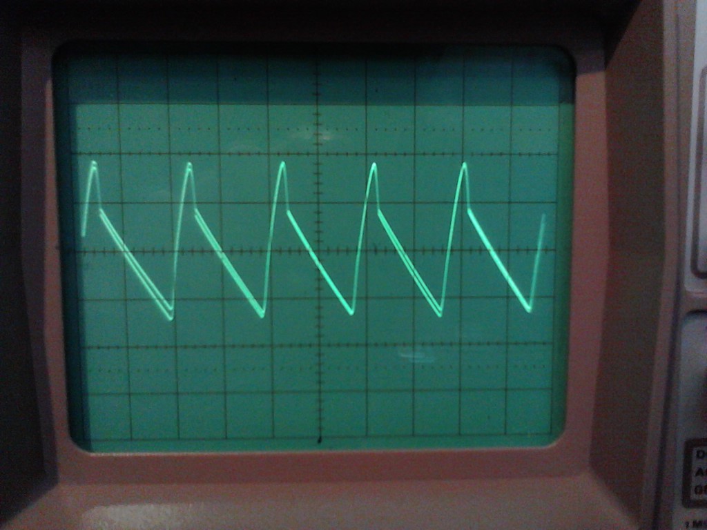 Erstens: Der Brummanteil auf der 15V Gleichspannungsschiene in Form eines Sägezahns hat 100Hz.