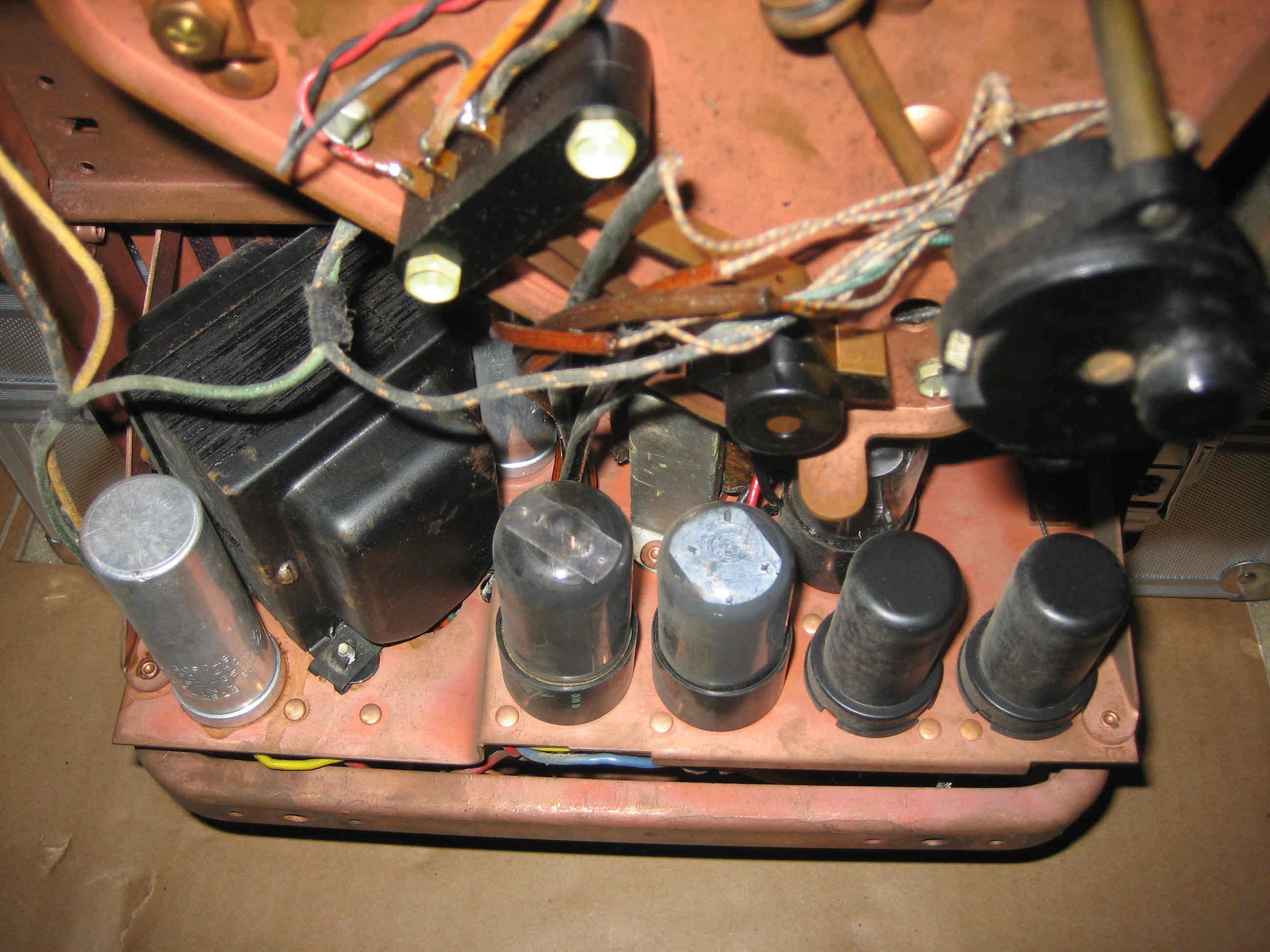 Ich habe die beiden 6V6 Groove Tubes sofort gesehen. Diese sind immer noch erhältlich, von einem namhaften Gitarrenamphersteller. Es gibt auch preiswerte russische Ersatzröhren mit der gleichen Bezeichnung im Musikalienhandel. Auch als ausgemessenes Pärchen. Ist das nicht erstaunlich..., bei einem Gerät von 1948 ?!