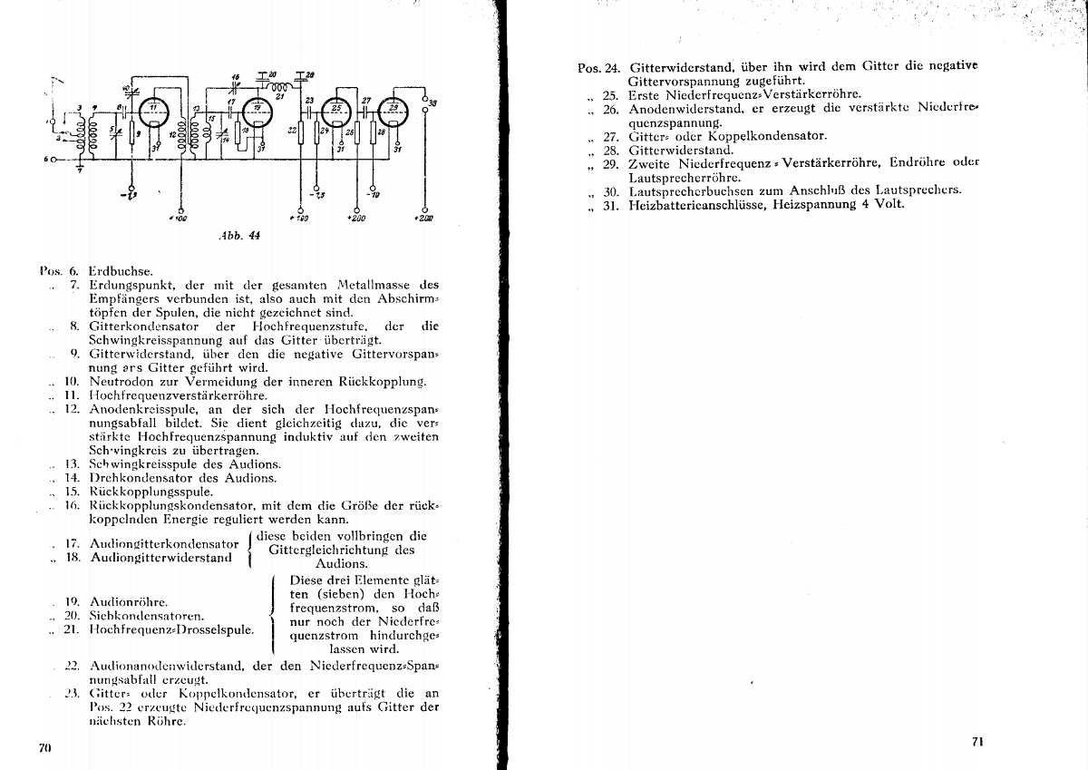 Die Schaltung stammt tatsächlich aus einem Fachbuch light 1943 . Daher die nicht so tolle Qualität des Scans , das Papier hat den satten Gilb . Trotzdem kann man auch daraus was lernen . Ich besaß vor vielen Jahren eine Netzanode . Die bestand aus Netztrafo , Ew. Gl. (Röhre) Blockkondensator , und eine Reihe von Spannungsabgriffen durch ein Widerstandsnetzwerk erzeugt . So erkären sich beim Radiola die verschiedenen Spannugnen . Übrigens war das mit Batterien für Anode + Heizung ja durchaus notwendig . denn früher hatten ja nicht alle Häuser Strom . Habe vor zig Jahren mit einem gesprochen , derzu dieser Zeit (1930) Elektrikerlehrling war . Er musste nach Feierabend bei Kunden Anodenbatterien wechseln und die Heizspannungsakkus wechseln bzw zum Laden mitnehmen . Durch solche Begegnungen und Heinz Richter wurde ich mit dem Bastelvirus infiziert . Ist für mich allerdings wirklich nur ein Hooby .