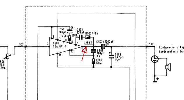 Ich habe C402-404 erneuert. Nun ertönt im Lautsprecher bei Wiedergabe ein rgelbares leises Brummen. Beim Abspielen eines Bandes auch nur dieses Brummen. Am IC T501 Kontakt 1 konnte ich 2,5V messen.