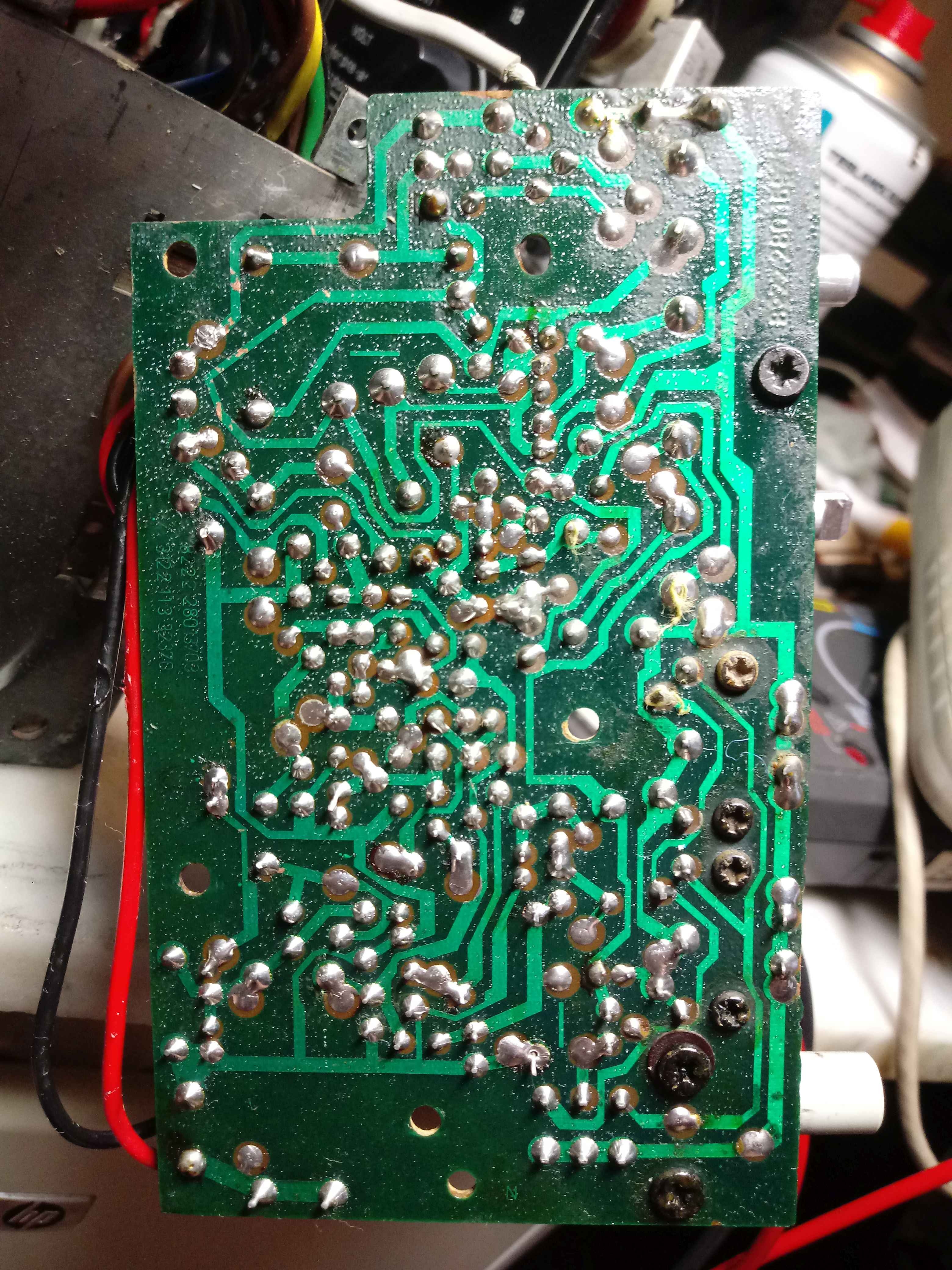 Ich bin ein wenig weiter und auf das nächste Hinderniß gestoßen. Meine Verstärkerplatine(die große) sollte OK sein. Die Spannungen die ich messen konnte scheinen zu stimmen. Da beim Einschalten bzw. beim ausstecken die Lautsprecher Leben zeigen denke ich mal das die so stimmt.