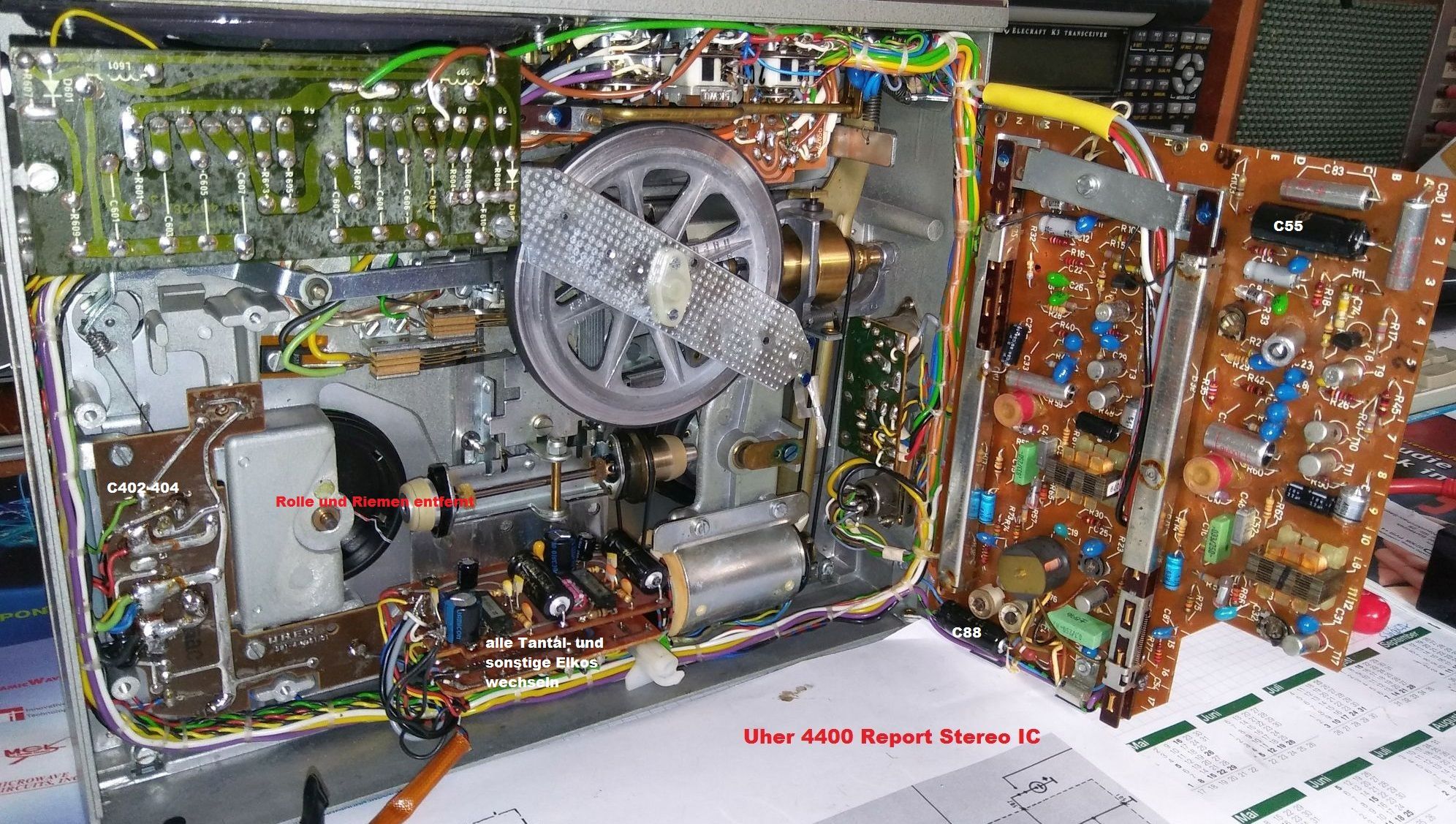 Die 43 Minuten sollte man, sofern der englischen Sprache mächtig, investieren, bevor man den Schraubendreher in die Hand nimmt. Man erfährt, wie einfach es ist, den Capstan auszubauen, dass man die Schrauben der Deckklappe nur ganz wenig herausdrehen sollte, alle Drucktasten ausgerastet sein müssen, ehe man die Hauptplatine wieder zuklappt, usw. Hinweise finden sich auch in diesem Beitrag:
