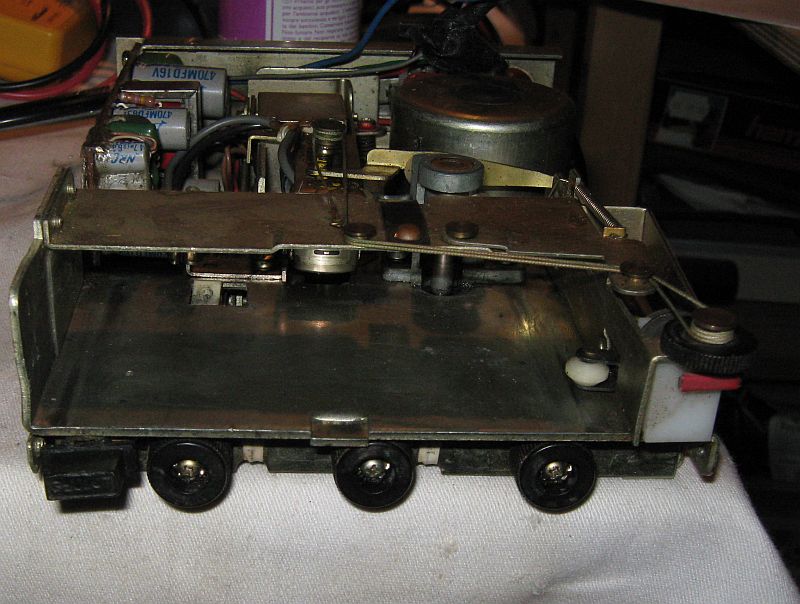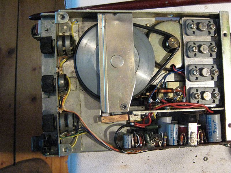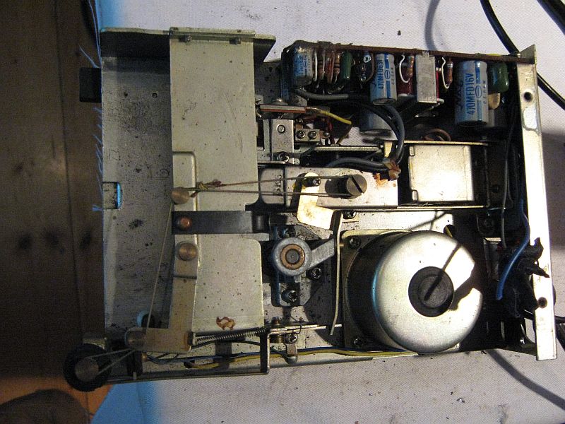 Aber eine allgemeine Frage zu Bandgeräten: Das Gerät quitscht beim Betrieb. Wie und womit schmiert man am besten die beweglichen Teile, so dass es später nicht verharzt? Die Mechanik ist äußerst simpel: Dicker Elektromotor durch geht per Gummiband auf noch größeres Rad, welches das kleine Antriebrädchen antreibt. Öl kann normalerweise nicht mit dem Band in Berührung kommen, wenn man die Mechanik nicht gerade ertränkt.
