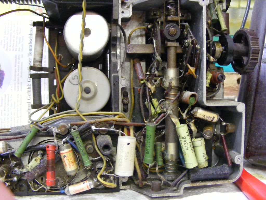 Hallo Tom, Alle Teer vergossenen Papierkondensatoren sollten raus, wenige Konensatoren sind wie auf den Bildern zu sehen, schon gewechselt. Die Netzelkos solltest du Formieren, wenn noch möglich ?. Das Pfeifen kommt bestimmt aufgrund der Kapazitätsschwachen (nicht formierten) Elkos.