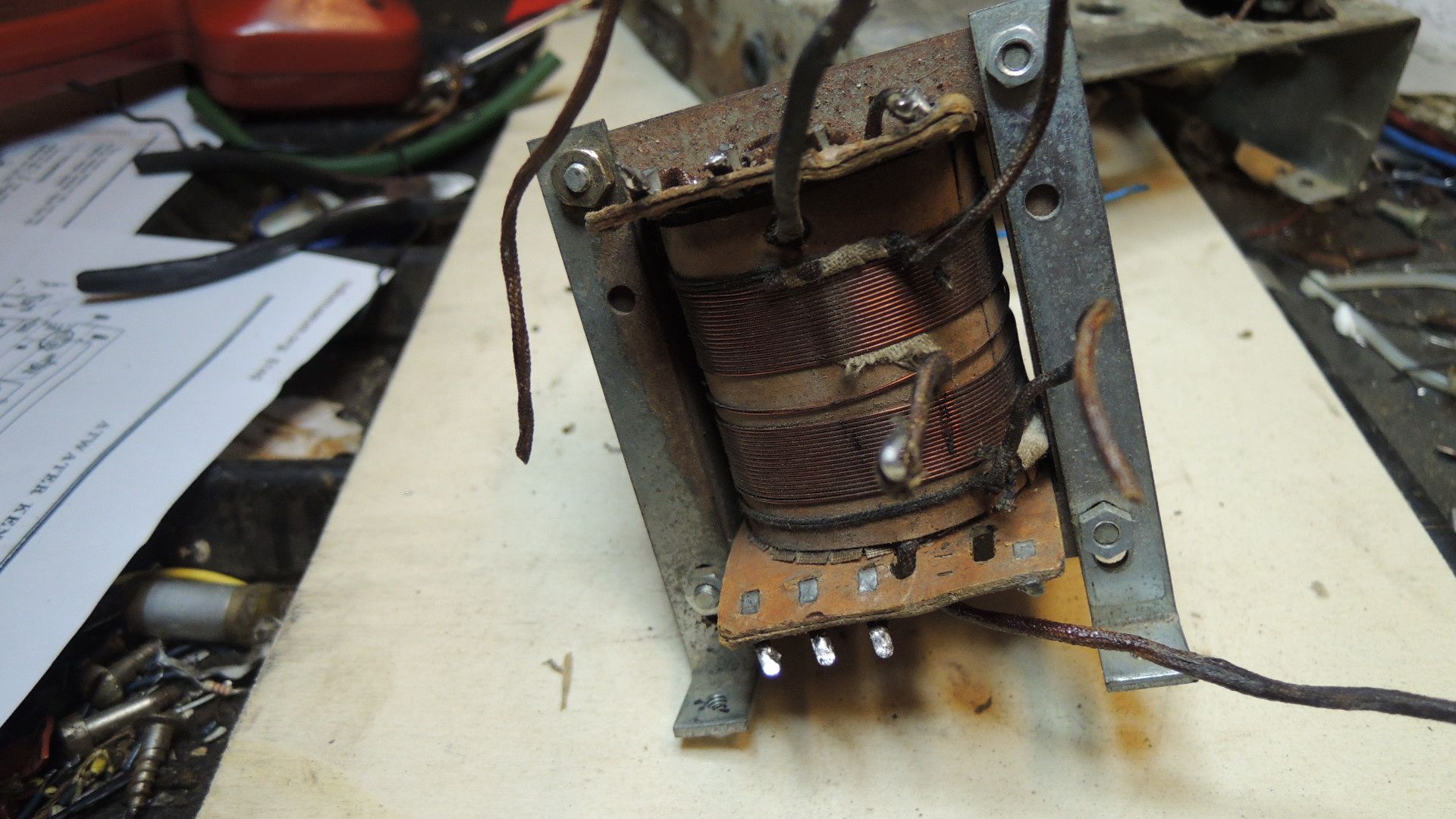 ja, das mit dem Trafo wird wohl keinen Zweck haben. Das ist so ein vermurkstes Ding und auch nicht original. Der stand nur auf dem Chassis. Wunderte mich eh, dass der beim Versand nicht das ganze Radio zerscheppert hat. Wie schon geschrieben, habe ich einen Trafo, der wohl mit den Abmessungen in etwa hinkommt. Hier werde ich die Heizungswerte ändern durch Abwickeln der Windungen. Gleichrichter 5 Volt und 2,5-3 Volt für die Röhren. Das Schöne ist ja, dass die Heizwindungen außen liegen.