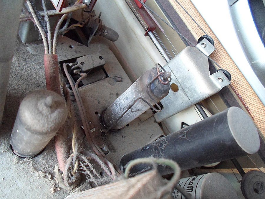 Nach dem, das Chassis trocken wird, kommt erste wichtige Arbeit. Die ganze Mechanik muss sauber gemacht werden. Ich mache das mit verschiedenen Mittels. Wichtig - gut alte Schmierung zu entfernen. Dann wird alles neu eingeschmiert, aber nicht zu viel, und eingestellt. Meistens sind die Drehkos betroffen, die gehen gar nicht mehr, oder sehr schwer. Zweite Stelle ist die UKW Umschaltmechanik, meistens klemmt. Nach dem bringe ich alle Kontakten bei dem Tastenschalter mit "Kontakt-60", 61 und WL in Ordnung. Genau so auch die Potis werden behandelt.