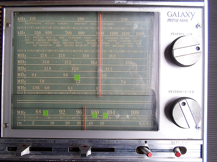 Hallo Friedrich, schön ist er geworden der Galaxy Mesa 6606. Ich habe das gleiche Modell ersteigert. Die Elektronik läuft wieder. Die meisten Elkos waren taub und zwei hatten einen Kurzschluß. Nun möchte ich die Schieberegler reparieren, weiss aber nicht, wie ich die Front demontieren kann. Zunächst müssen die Sender-Einstellknöpfe demontiert werden nehme ich an. Gibt es da Madenschrauben oder können die Knöpfe einfach abgezogen werden? Ich möchte nichts kaputt machen. Vielleicht kannst du mir mit einem Hinweis helfen.