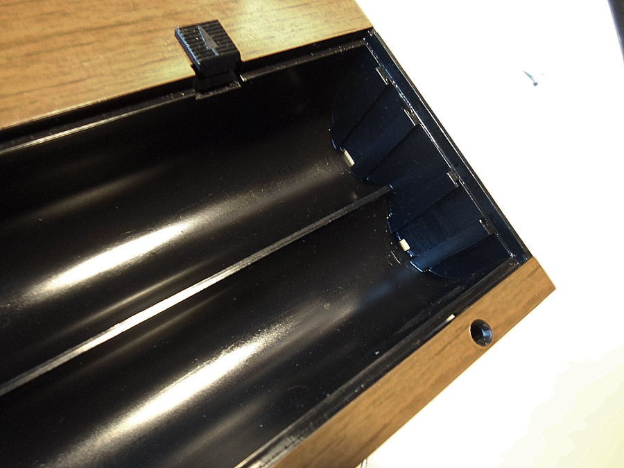 Und ich mache weiter. Das Skala Glas ist jetzt befreit von Aufkleber und aufpoliert. Alle schwarze Teile vom Gehäuse, die verschmutzt waren, sind neu lackiert. Die komplette Mechanik war sauber gemacht; neu eingeschmiert und eingestellt. Die Wellenbereich Schalters, Potis sind sauber gemacht und eingeschmiert.