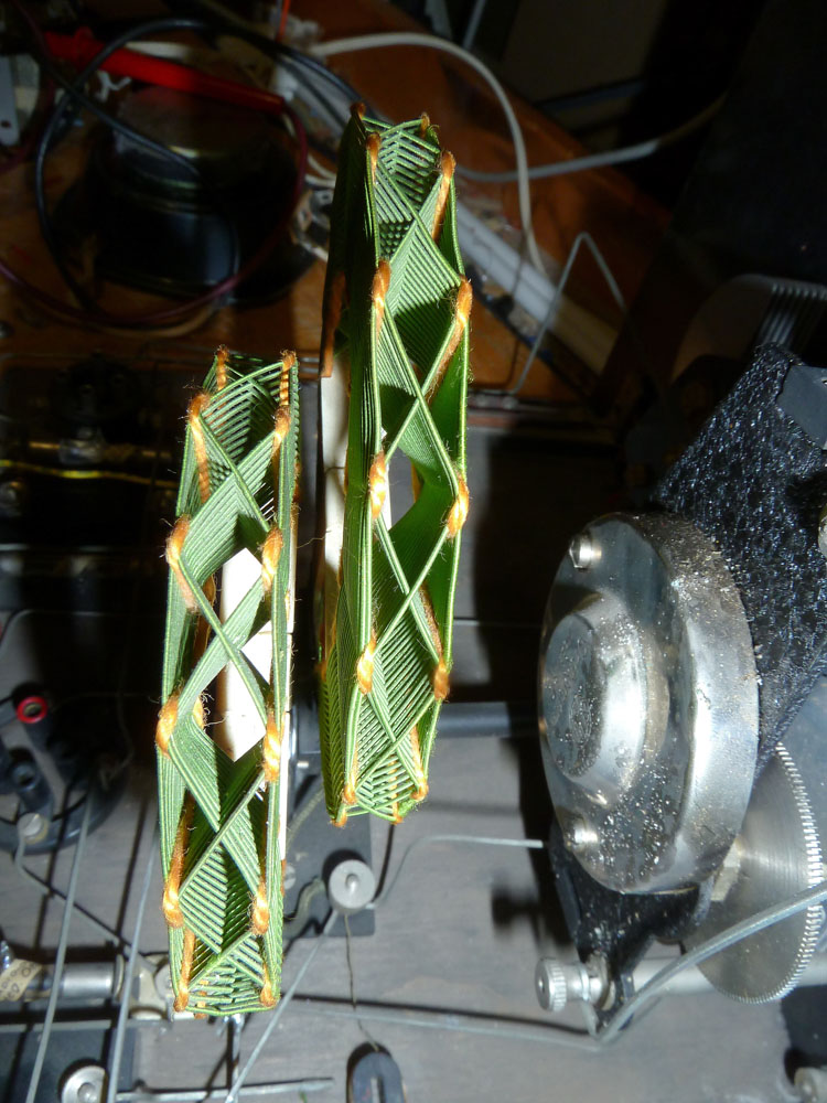 Die Wabenspulen, hier die Schwinglreisspule und die schwenkbare Rückkopplungsspule: