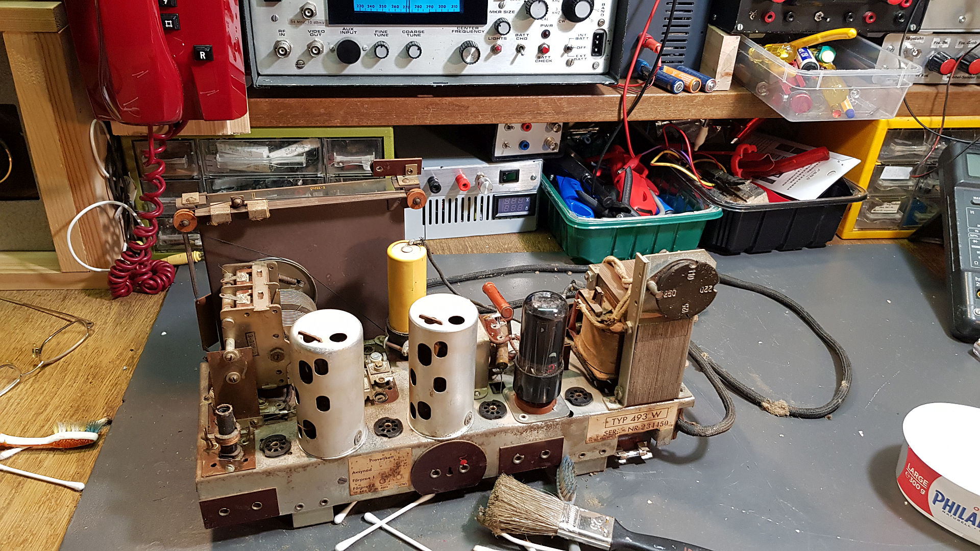 Als Nächstes werde ich die Papierkondensatoren an kritischen Stellen austauschen, insbesondere im Netzteil und den Kondensator am Steuergitter der NF-Endröhre – für mich eine obligatorische Maßnahme. Danach werde ich die Elkos durchmessen und gegebenenfalls vorsorglich ersetzen oder formieren.