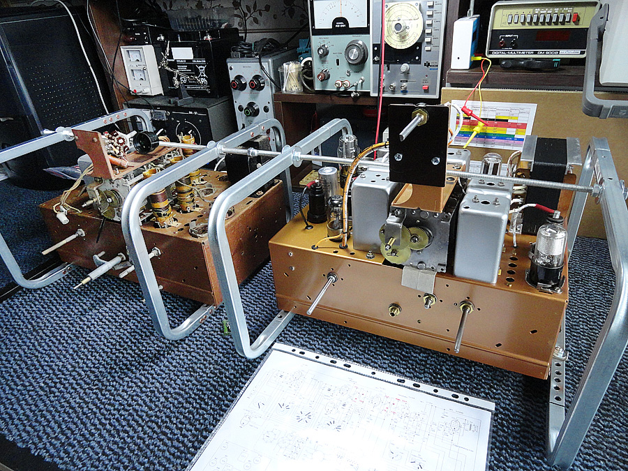 Danke für die schönen Fotos! Ich sitze staunend am Bildschirm und sehe mir die beindruckend gut aussehende Skala an. Wie hast du die gemacht? Was heisst Teile aus Petersburg? Meinst damit die Holzteile? Alles in Allem bis du ein Multitalent: Chapeau!!! Radiotechniker, Lackierer, Skalenzeichner, Glaser, Schreiner......