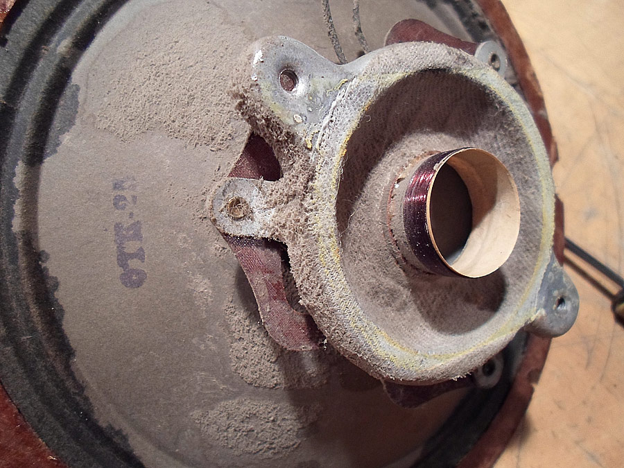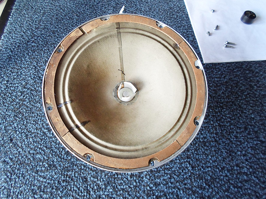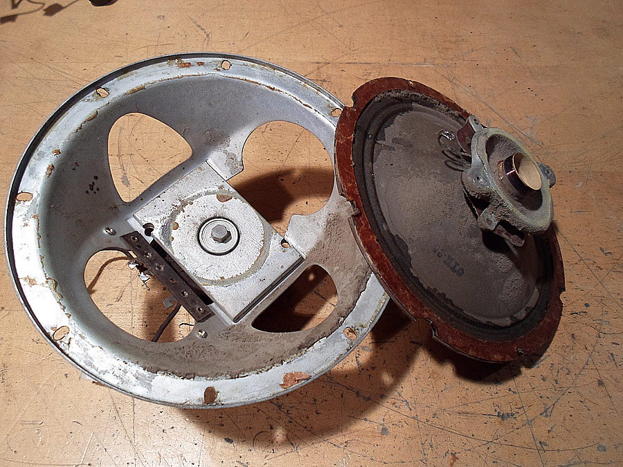Jetzt lasse ich das Gehäuse in Ruhe, und fange langsam die einzige Komponenten in Ordnung zu bringen. Fange ich vom Lautsprecher an. Der Lautsprecher war fast in OK, aber trotz dem wollte ich im untersuchen und bei Bedarf auch reparieren.