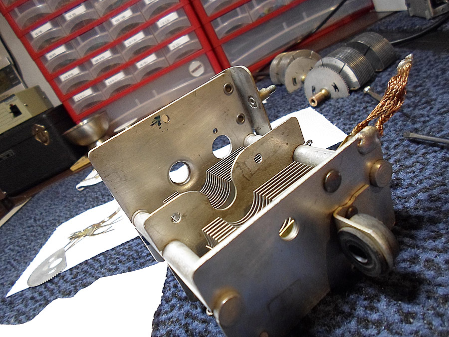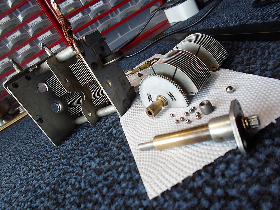 Bei dem gekauftem Drehko fehlt aber Reducktor. Die Aufgabe ist von zwei kaputte ein Guter zu machen. Erst mal alles sauber machen und auseinander bauen. Und das ist nicht ganz einfach.