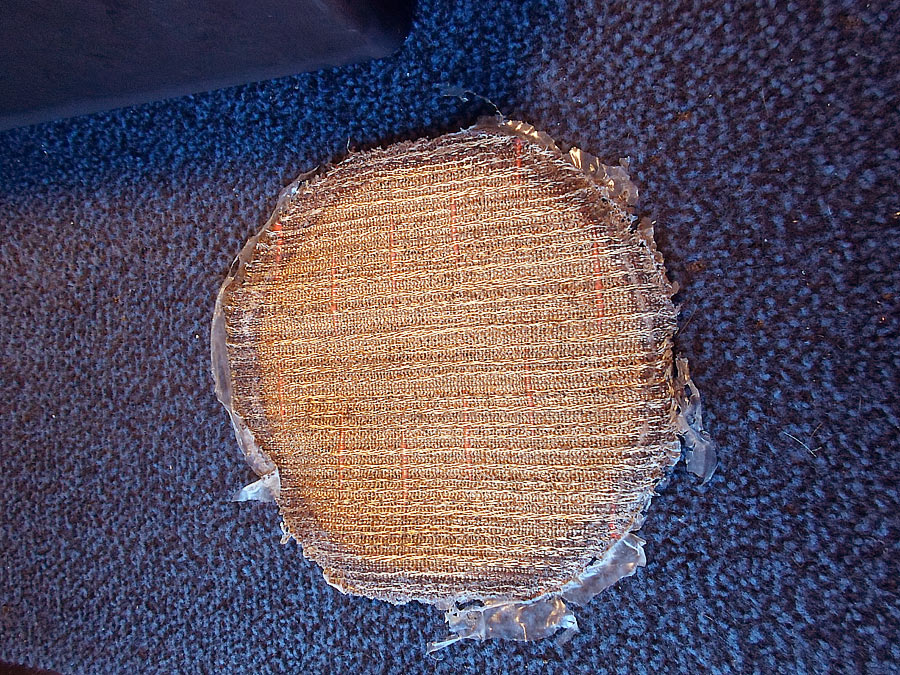 das ist ein Leinenstoff und er ist mit dem gereinigten am Rand verklebt, dann auf eine Schablone angezogen und reingeklebt.