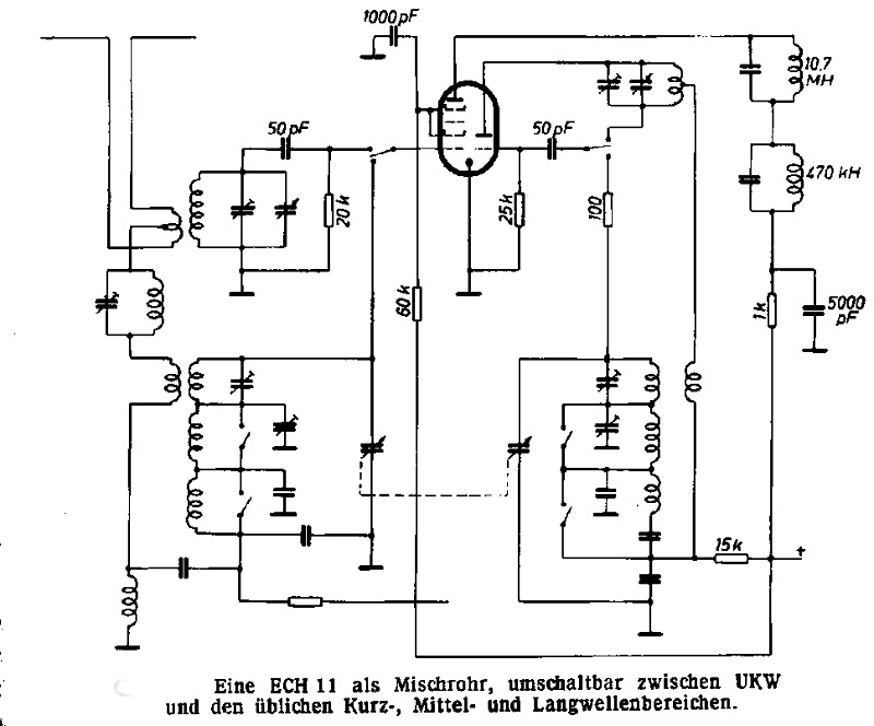 Dann sieht die Mischstufe in etwa so wie auf dem Prinzipschaltbild aus, ohne Vorstufe. Aber schon damals um 1950 war das die "schlechteste" aller Lösungen für UKW Super.