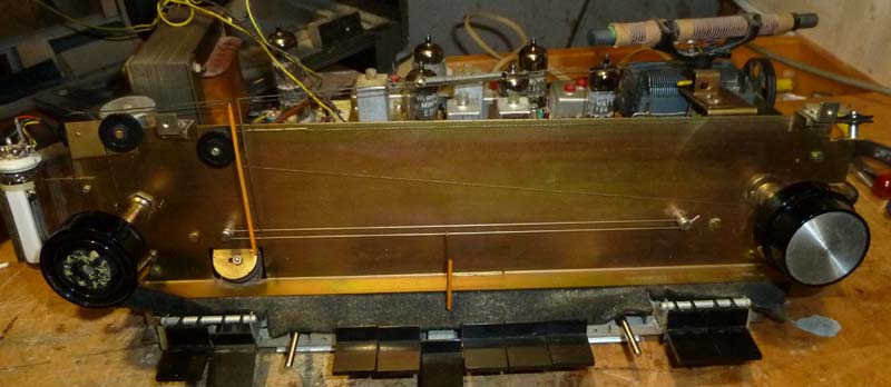 Das Chassis noch mit abgenommenem Skalenblech, das musste weg, damit ich den verharzten Ferritantennen-Antrieb reinigen konnte.
