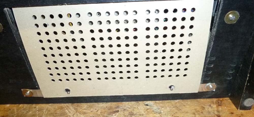 Blick von hinten: Der Gehäuseboden ist schräg, damit die Front, die wie üblich schräg zum Chassis steht, senkrecht zum Gehäuse ausgerichtet ist. Etwas seltsame Konstruktion und erschwert durch die geringe 'Durchfahrtshöhe' das Einschieben des Chassis in das Gehäuse. Ebenfalls speziell ist der diagonale Einbau des Lautsprechers. Eigentlich wäre ein runder Lautsprecher akustisch besser gewesen, aber man versteht halt nicht alles...