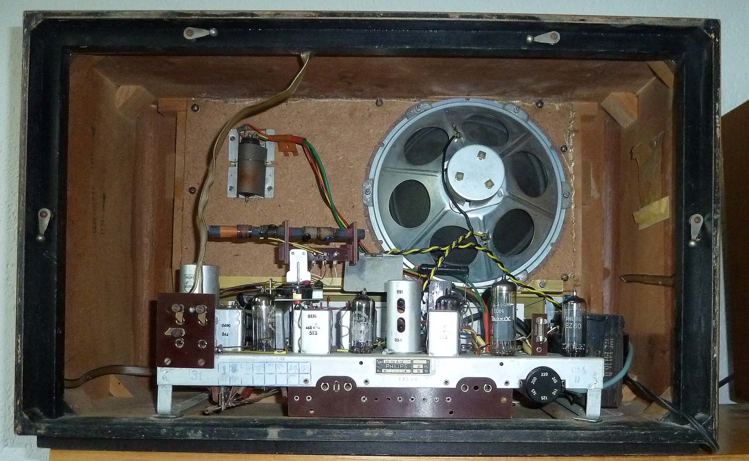 Der Klang ist super, auch ohne den elektrostatischen Hochtöner klare Höhen und dank dem grossen Lautsprecher und eher grossen Gehäuse einen satten Bass. Die EL84 gibt dazu auch ihr Letztes... die zulässige Verlustleistung von 12W wird fast auf das Milliwatt ausgereizt.