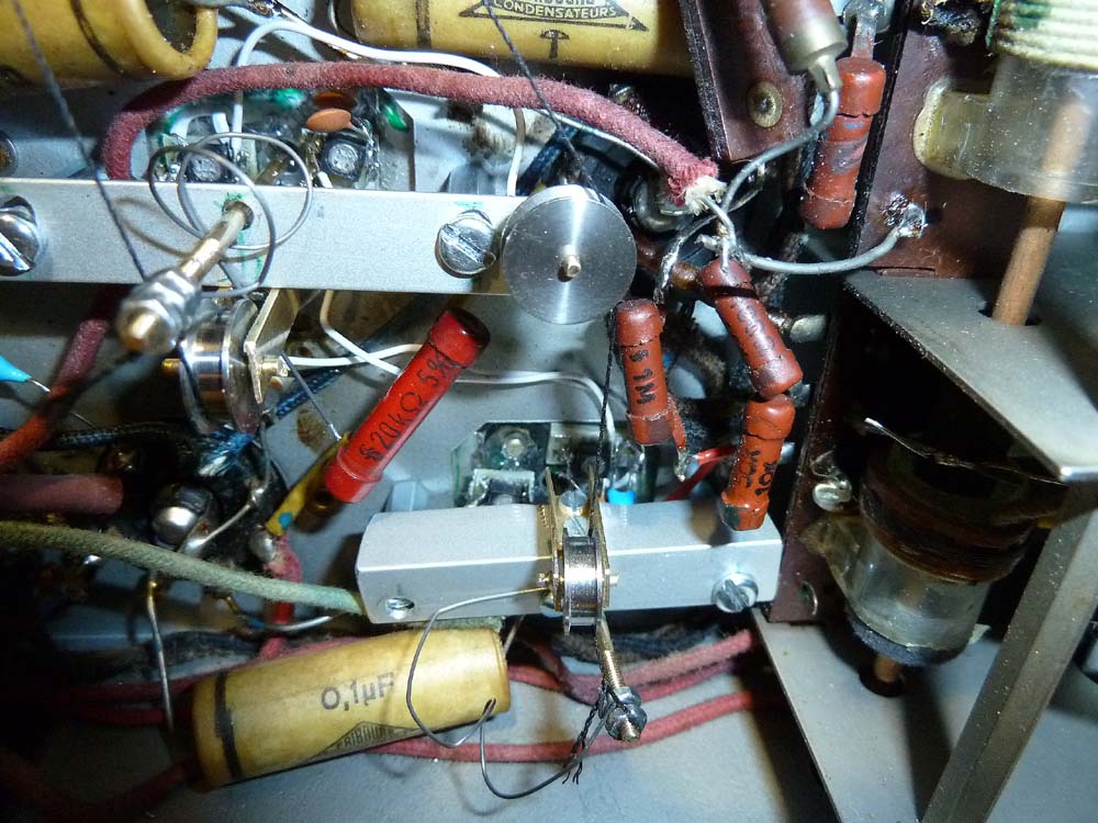 Gestern hatte ich noch nähere Bekanntschaft mit dem Seilzug der KW-Lupe, da die Schnur riss. Der Ersatz war eine ziemliche Fummelei, da ich den Abstimmantrieb nicht zerlegen wollte, aber es klappte dann doch noch, nur der Drehknopf geht jetzt verkehrt herum, da hatte ich das Seil verkehrt herum aufgelegt. Mal sehen, ob ich das noch korrigiere, denn es gibt Arbeit. Der Skalenzeiger geht richtig herum, und das ist wichtiger.