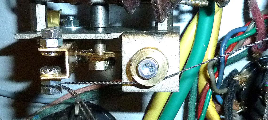 Dank dem gerissenen Antriebsseil musste ich die Skalenscheibe und das Blech dahinter abmontieren, so dass ich noch ein Foto vom Skalenantrieb machen konnte: