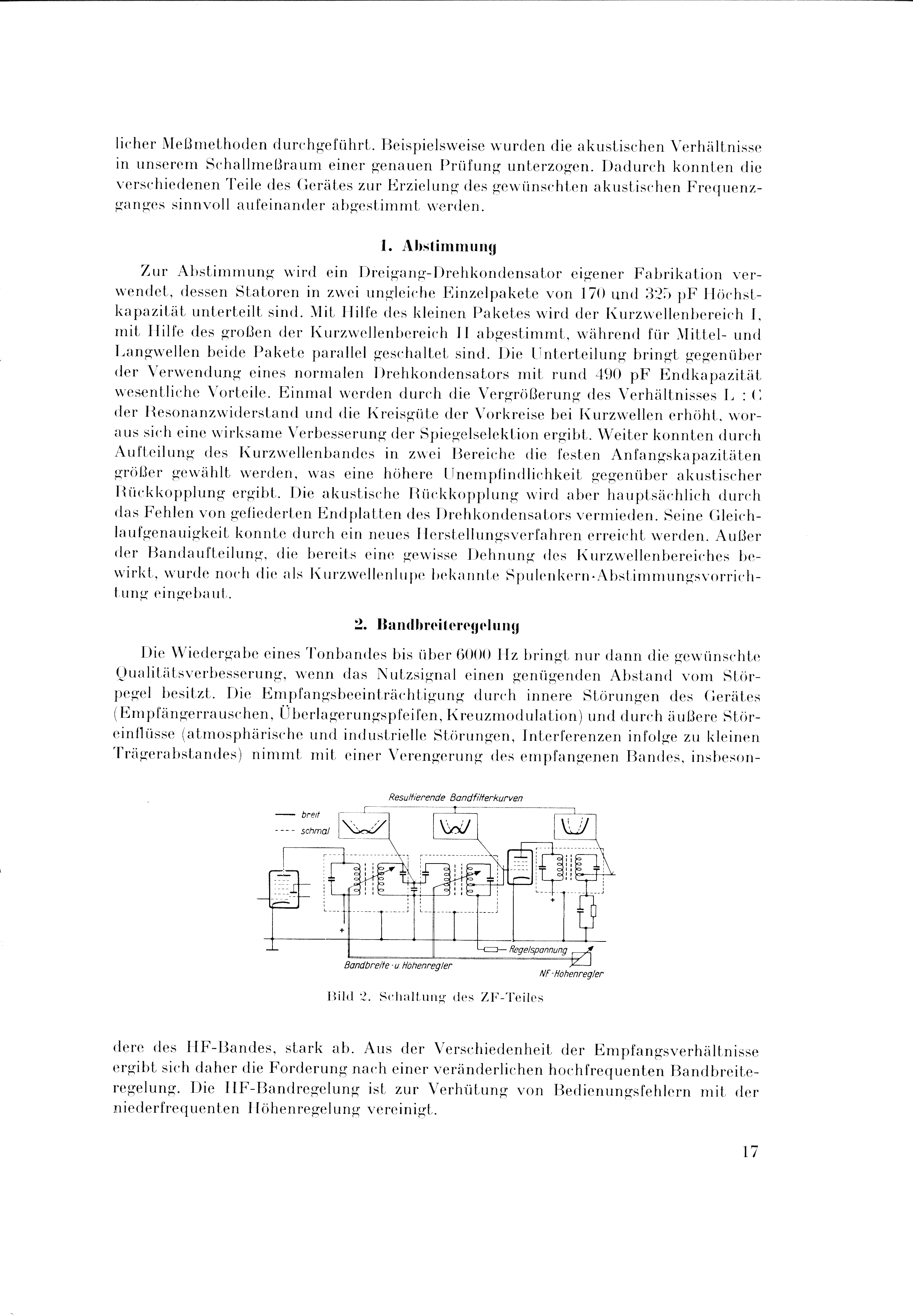 Bemerkungen: sehr hohe Empfindlichkeit auf KW (ca. 1uV), die beiden Eingangskreise werden für LW und MW als Bandfilter vor die HF-Stufe geschaltet und für die beiden KW-Bänder je ein Kreis vor und einer hinter die HF-Stufe. Klangregelung erfolgt über die Gegenkopplung der Endstufe, dadurch echte Bass-Anhebung möglich und sehr guter Ton.