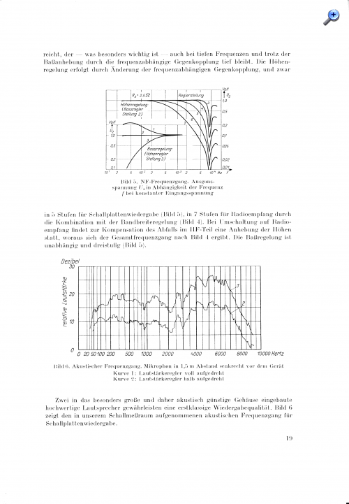 Die NF-Vorwärtsregelung in Verbindung mit der sehr guten Basswiedergabe erzeugt lustige Effekte. Dreht man schnell über einen starken Sender, bewegen sich die Membranen der Lautsprecher und damit auch der Stoff der Schallwand recht heftig, da durch die Regelung der Arbeitspunkt der NF-Röhre und damit die die Spannung an der Anode stark ändert, was von der Endstufe kräftig verstärkt wird. Da die Endstufe nicht übersteuert, bleibt das Ganze bis auf ein schwaches, dumpfes 'Plopp' geräuschlos.
