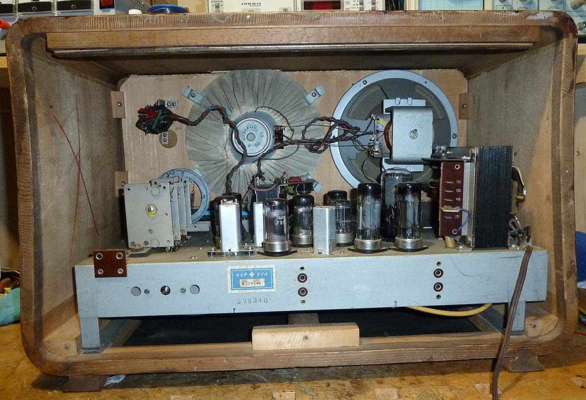 @Walter: du wolltest noch die Serienummer, das habe ich überlesen und hole ses jetzt nach, hier ist sie: 279340. Herstell- oder Prüfdatum ist Februar 1949, steht samt Kürzel auf einem Abschirmblech im Chassis.