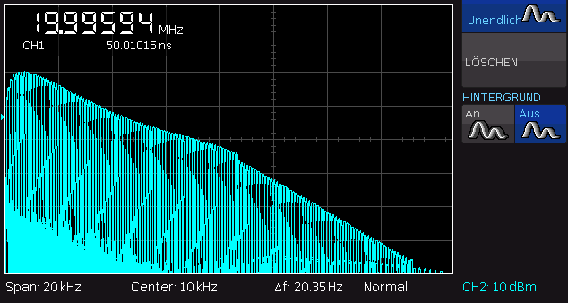 Hier noch der NF-Frequenzgang bei Radioempfang (10dB/Div und 2kHz/Div): ZF schmal: ZF breit: Man sieht deutlich den viel steileren Abfall bei schmalem Filter.