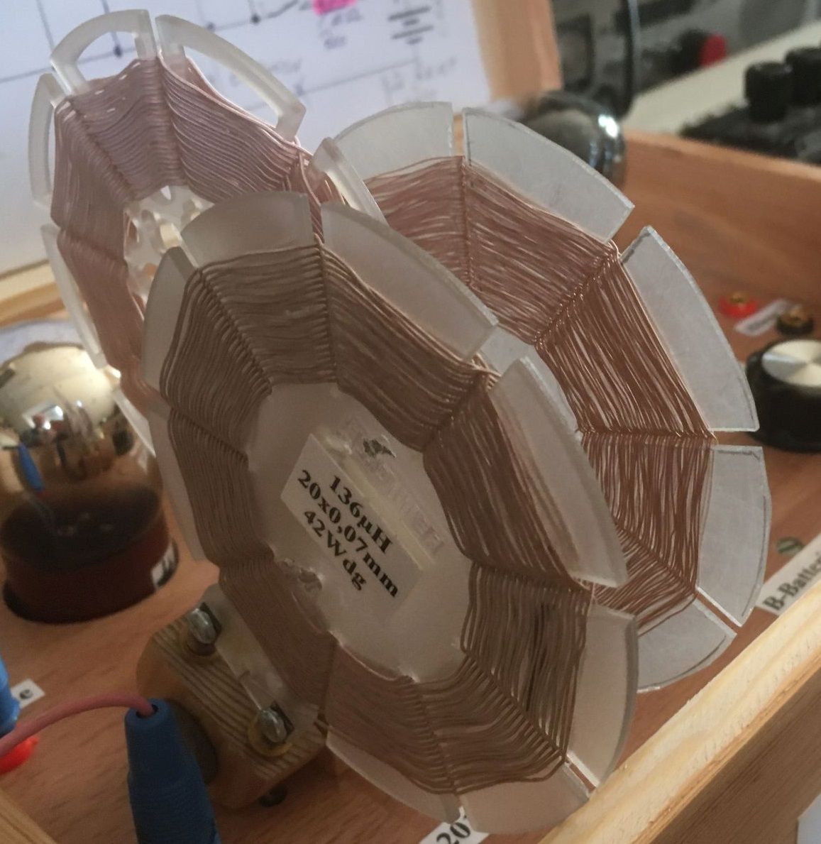 Übrigens gelang dank Deiner Dimensionierungsangaben endlich eine gut funktionierende Rückkopplung über den gesamten MW-Bereich unter Beibehaltung der Hochohmigkeit mit jetzt unschlagbarer Selektivität. Im unteren Frequenzbereich wird teilweise sogar schon die Bandbreite des Signals beschnitten. Es ist nur eine Spule von 170 Mikrohenry erforderlich. Die Rückkopplungsspule ist bei mir sogar 450 Mikrohenry gross. Versuche mit kleineren Spulen sind hier zum Scheitern ver- urteilt, und kleinere Audion-Anodenwiderstände als 390k verhindern eine vernünftige Anodengleichrichtung. Es ist offenbar so, dass ein einziger LC-Serienkreis und ein L-gekoppelter Parallelkreis einen Unterschied machen.