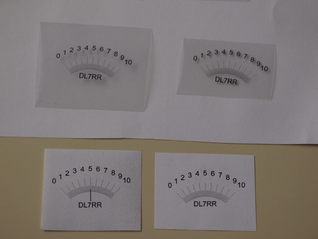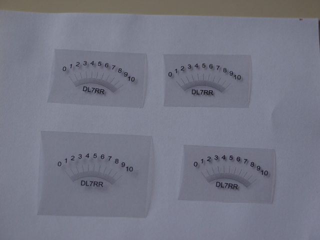 Hallo zusammen liebe Freunde, also ich habe noch weitere Versuche außer den schon beschriebenen unternommen wobei sich eine Version als machbar herauskristallisierte.Die Folie wird mit Nagelklarlack beschichtet und das mit einem Laserdrucker bedruckte und ausgeschnittene Papier mit fertiger Skala wird auf die noch nasse Fläche vorsichtig aufgelegt.Das zieht sich auf der nassen Folie von alleine rann und kann mit der Papierseite nach oben zum Trocknen abelegt werden.