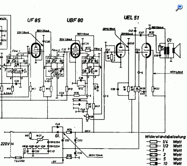 danke auch für Deine Antwort. Das habe ich auch gedacht, das der Selengleichrichter defekt ist. Aber auch beim Überbrücken mit einer Diode ist die Spannung noch nicht da wo sie sein soll, 130V etwa. Nach ziehen der UEL steigt die Anodenspannung auf den etwa vorgegebenen Wert. Also Diode wieder raus und weiter suchen... . Es muss schon an der Gittervorspannung liegen, weil die UEL51 zieht den Strom. Aber nach gründlicher Untersuchung kam ich nicht weiter. Bin ja im Moment nicht on. Aber morgen werde ich da mal weitersuchen. Ist nur total besch... weil man fast nicht an die Röhrenfassung herankommt. Wie die das mal zusammengebaut haben, ist schon ne Meisterleistung.